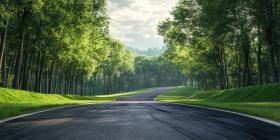 Winding Asphalt Track Through Lush Green Forest