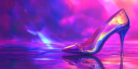 Elegant High-Heeled Shoes with Glittery Finish: Stylish Footwear in a Vibrant, Colorful Setting with Reflective Surface