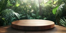 Lush Jungle Oasis: A Wooden Platform Nestled Amongst Vibrant Foliage