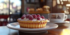 Raspberry Delight: A Tart with Fresh Berries and a Cup of Coffee