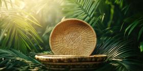Warm and Earthy: A Woven Basket and Tray in a Sunlit Corner