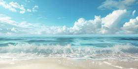 Endless Horizon: A Tranquil Beachscape with White Clouds Drifting Across a Sapphire Sky