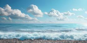 Endless Horizon: A Tranquil Beachscape with White Clouds Drifting Across a Sapphire Sky