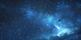 Celestial Symphony: A Starry Night Sky with a Shooting Star and Wispy Clouds