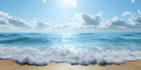 Endless Horizon: A Tranquil Beachscape with White Clouds Drifting Across a Sapphire Sky