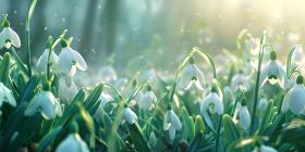 Springtime Serenity: A Mountain Landscape with Blooming Crocuses and a Sunlit Sky