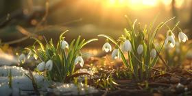 Springtime Serenity: A Mountain Landscape with Blooming Crocuses and a Sunlit Sky