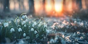 Springtime Serenity: A Mountain Landscape with Blooming Crocuses and a Sunlit Sky