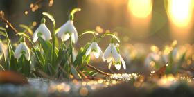 Springtime Serenity: A Mountain Landscape with Blooming Crocuses and a Sunlit Sky