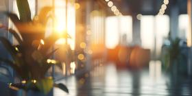 Modern Office with Sunlit View: A Bright and Productive Workspace