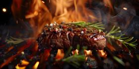 Sizzling Steaks on the Grill: A Mouthwatering Scene of Flames and Juicy Meat
