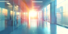Modern Office with Sunlit View: A Bright and Productive Workspace