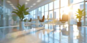 Modern Office with Sunlit View: A Bright and Productive Workspace