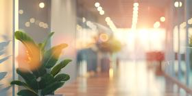 Modern Office with Sunlit View: A Bright and Productive Workspace