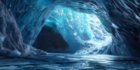 A Frozen Cathedral: A Majestic Ice Cave with Icicles and a Serene Landscape