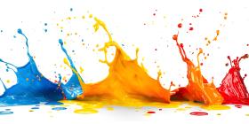 A Symphony of Colors: A Dynamic Splash of Blue, Orange, and Purple Paint