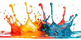 A Symphony of Colors: A Dynamic Splash of Blue, Orange, and Purple Paint
