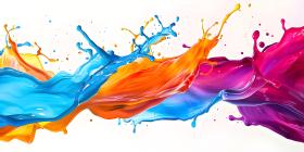 A Symphony of Colors: A Dynamic Splash of Blue, Orange, and Purple Paint