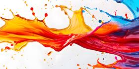 A Symphony of Colors: A Dynamic Splash of Blue, Orange, and Purple Paint