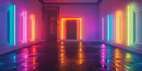 Neon Dreams: A Futuristic Corridor Illuminated by Vibrant Lights