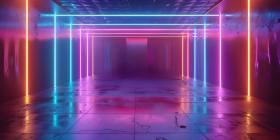 Neon Dreams: A Futuristic Corridor Illuminated by Vibrant Lights