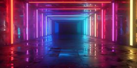 Neon Dreams: A Futuristic Corridor Illuminated by Vibrant Lights