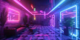 Neon Dreams: A Futuristic Corridor Illuminated by Vibrant Lights