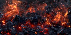 Fiery Embers: A Bed of Glowing Coals with Dancing Flames