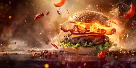 Flames of Flavor: A Burger Engulfed in a Fiery Inferno of Deliciousness