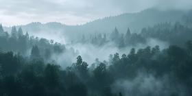 Enveloped in Mist: A Serene Mountain Landscape Shrouded in Clouds