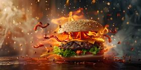 Flames of Flavor: A Burger Engulfed in a Fiery Inferno of Deliciousness