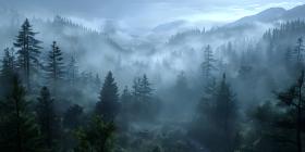 Enveloped in Mist: A Serene Mountain Landscape Shrouded in Clouds
