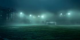 Nighttime Soccer: A Foggy Field Bathed in the Glow of Floodlights