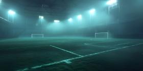 Nighttime Soccer: A Foggy Field Bathed in the Glow of Floodlights