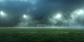 Nighttime Soccer: A Foggy Field Bathed in the Glow of Floodlights