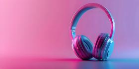 Neon Glow: A Vibrant Pair of Headphones Illuminated by Pink and Blue Lights