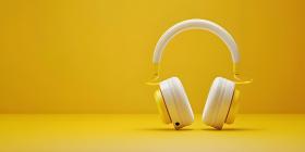 Neon Glow: A Vibrant Pair of Headphones Illuminated by Pink and Blue Lights