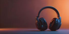Neon Glow: A Vibrant Pair of Headphones Illuminated by Pink and Blue Lights