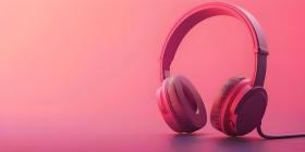 Neon Glow: A Vibrant Pair of Headphones Illuminated by Pink and Blue Lights