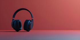 Neon Glow: A Vibrant Pair of Headphones Illuminated by Pink and Blue Lights