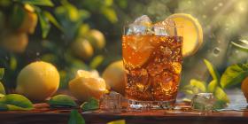 Summer Paradise: A Refreshing Iced Tea with Lemon Slices Under a Sunny Sky