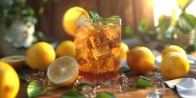 Summer Paradise: A Refreshing Iced Tea with Lemon Slices Under a Sunny Sky