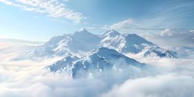 Aerial View of a Mountain Range: A Breathtaking Panorama of Snow-Covered Peaks and Clouds