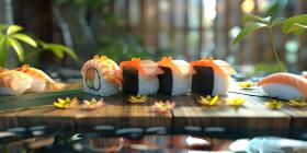 A Rainbow of Flavors: A Vibrant Array of Sushi Rolls, Japanese Cuisine: A Colorful Arrangement of Sushi with a Teapot and Chopsticks