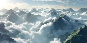 Aerial View of a Mountain Range: A Breathtaking Panorama of Snow-Covered Peaks and Clouds
