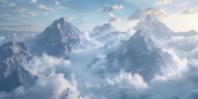 Aerial View of a Mountain Range: A Breathtaking Panorama of Snow-Covered Peaks and Clouds