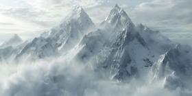 Aerial View of a Mountain Range: A Breathtaking Panorama of Snow-Covered Peaks and Clouds