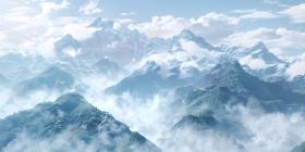 Aerial View of a Mountain Range: A Breathtaking Panorama of Snow-Covered Peaks and Clouds