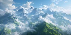 Aerial View of a Mountain Range: A Breathtaking Panorama of Snow-Covered Peaks and Clouds