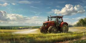 Agricultural Spraying: A Tractor Applying Fertilizer or Pesticide on a Farmland
